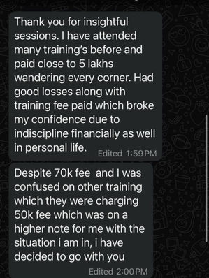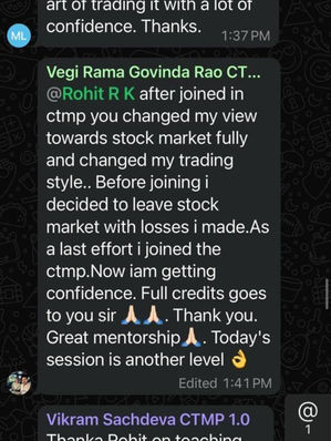 I am thoughtfully impressed with Rohit's trading exercise, particularly his ability share live examples, his teaching style particularly during live market hours is phenomenal. Thankyou Rohit, for your dedication and mentorship.